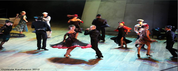 Particularly striking: the Mambo troupe, whose performances reflect the explosive social dynamics aboard the ship. This journey into chaos after all, we are in the early 1930s and the ship is heading toward Germany is the subject of ballet director Jochen Ulrich’s final new production of the season. Set to music specially arranged and composed for this evening by David Wagner ranging from fiery Latin American mambo rhythms of the 1930s and 1940s (including Xavier Cugat), to yearning songs by Zarah Leander and Marlene Dietrich, well-known jazz and blues standards (Night Time Is the Right Time, Put the Blame on Mame, etc.), and the waltzing ecstasy of Johann Strauss or Emmerich Kálmán Ulrich’s choreography and staging will focus on razor-sharp and absurd imagery that, whether stirring or touching, is above all: an amusingly grotesque yet threatening dance on the edge.