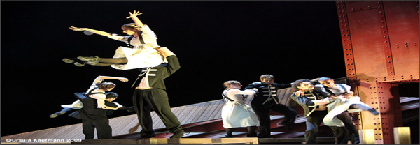 Kafka Amerika - Landestheater LInz 2009 - Jochen Ulrich, Kurt Schwertzik, Simon Corder, Bjanka Ursulov - Jonatan Salgado Romero, Ilja van den Bosch, Matej Pagjert, Alexander Novikov and Dancers of the Jochen Ulrich Company at the Landestheater Linz